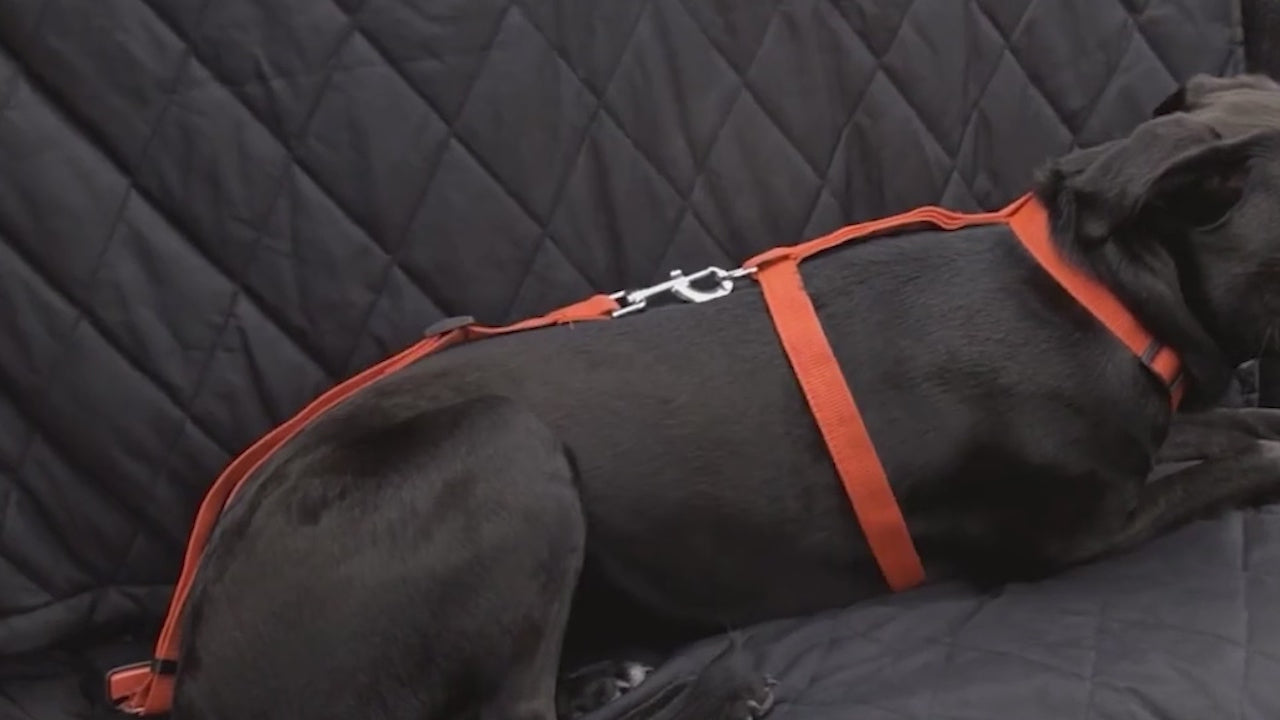 - Includes: Non-slip backing, adjustable headrest anchor, seat anchor, 2 seat belt openings, 2 dog harnesses